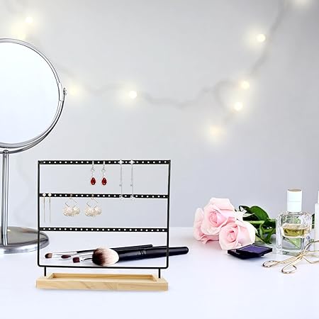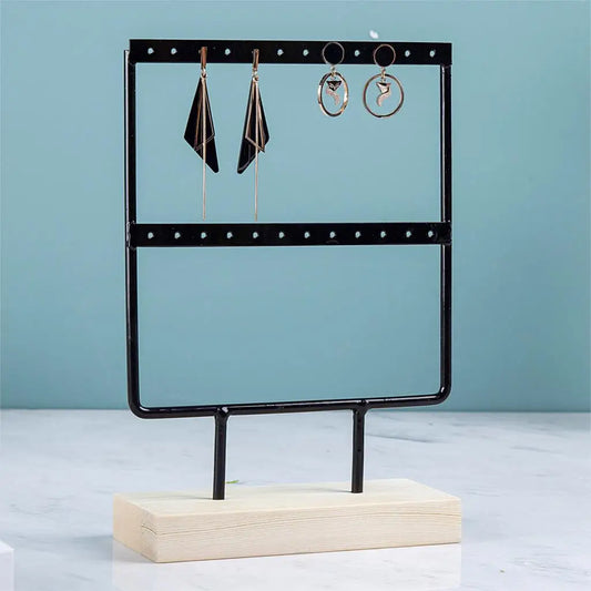Support à bijoux, présentoir à bijoux en bois et en métal noir, 2 niveaux, 24 trous