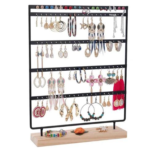Support à bijoux, présentoir à bijoux en bois et en métal noir, 3 niveaux, 69 trous
