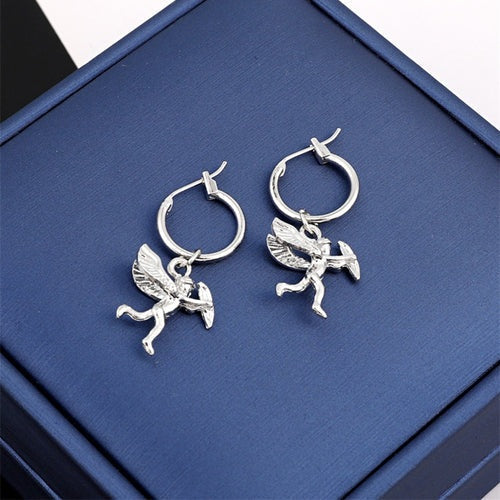 Boucles d'oreilles Cupidon, bijou en acier inoxydable argenté