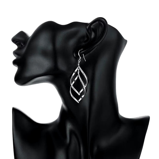 Boucles d'oreilles Anneaux enlacés, bijou en alliage plaqué argent 925