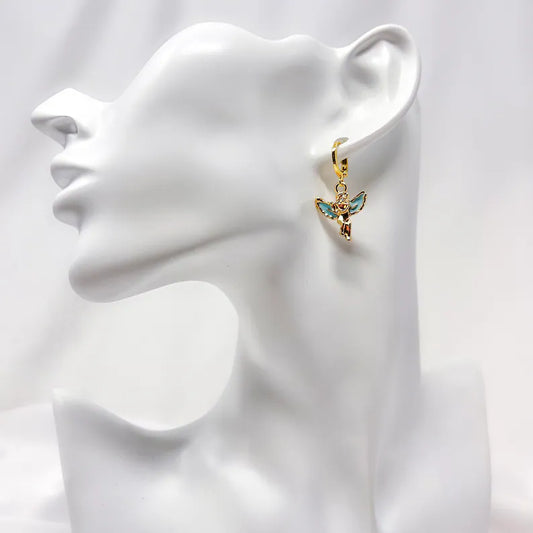 Boucles d'oreilles Ange aux ailes bleues, bijou en plaqué or et en émail