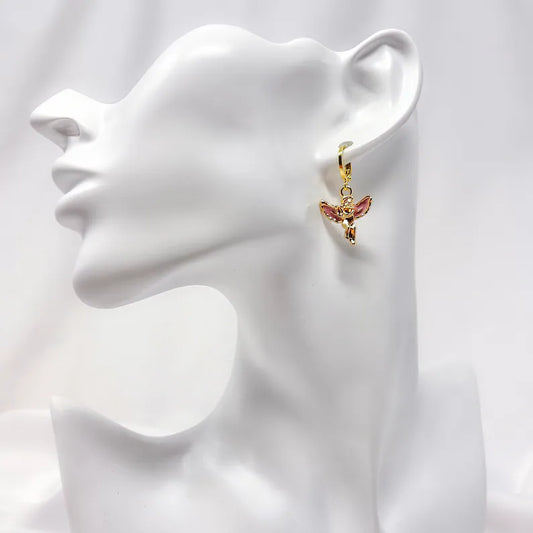 Boucles d'oreilles Ange aux ailes roses, bijou en plaqué or et en émail