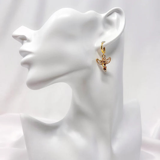 Boucles d'oreilles Ange aux ailes blanches, bijou en plaqué or et en émail