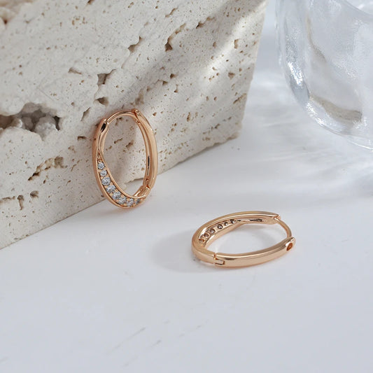 Boucles d'oreilles Anneaux avec zircons, bijou en plaqué or rose