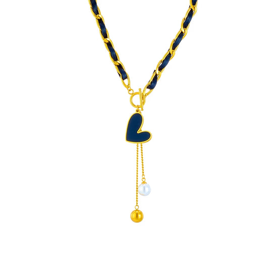 Collier Coeur noir, bijou en acier inoxydable doré