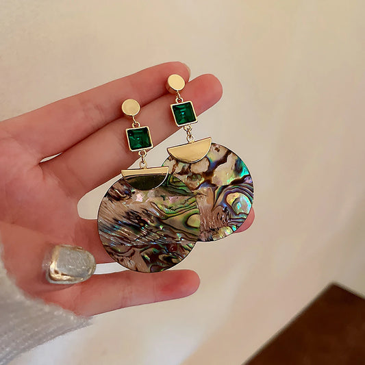 Boucles d'oreilles Coquillage d'ormeau avec zircons verts, bijou en plaqué or