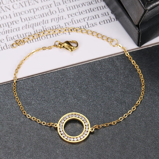 Bracelet serti de zircons, bijou en acier inoxydable doré
