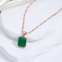 Collier avec pendentif en pierre verte, bijou en plaqué or rose