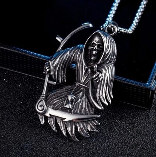 Collier "La Mort", démon avec faucille, bijou gothique 3D