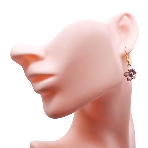 Boucles d'oreilles Fleurs de sakura roses, bijou en acier inoxydable et en émail