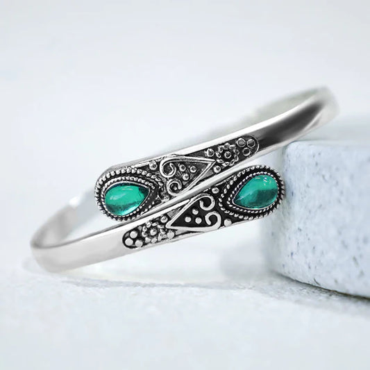 Bracelet bangle ouvert en pierre naturelle agate verte