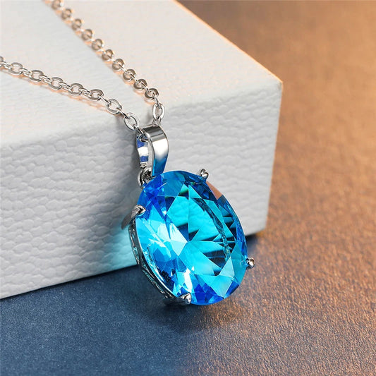 Collier Topaze bleue, bijou en alliage plaqué argent et en cristal