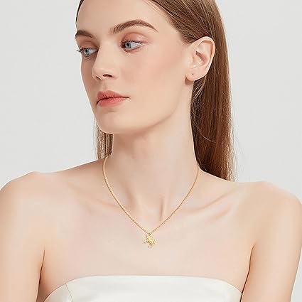 Collier Cheval et cavalière, bijou en acier inoxydable doré