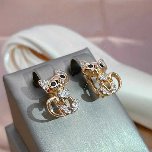 Boucles d'oreilles Chat, bijou en alliage plaqué or 585 (14 ct) et zircons naturels