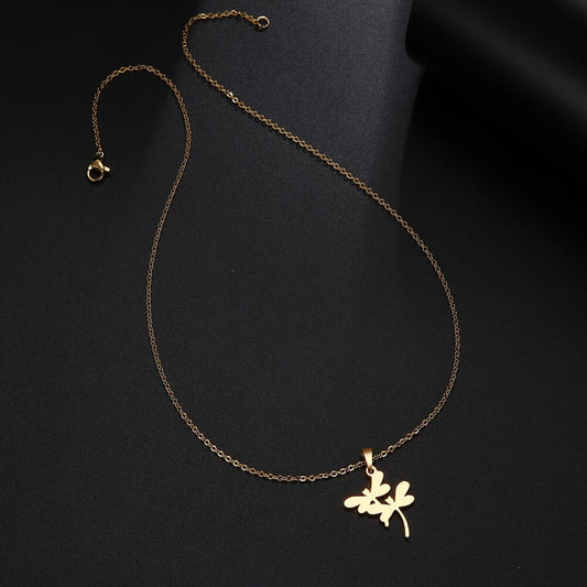 Collier Duo de Libellules, bijou en acier inoxydable doré