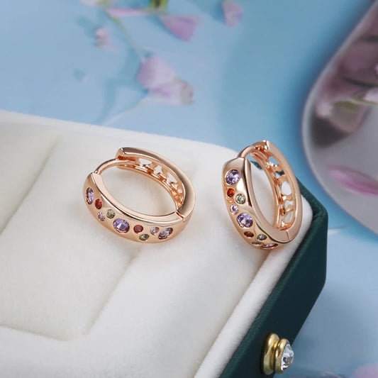 Boucles d'oreilles anneaux multicolores, bijou en plaqué or rose