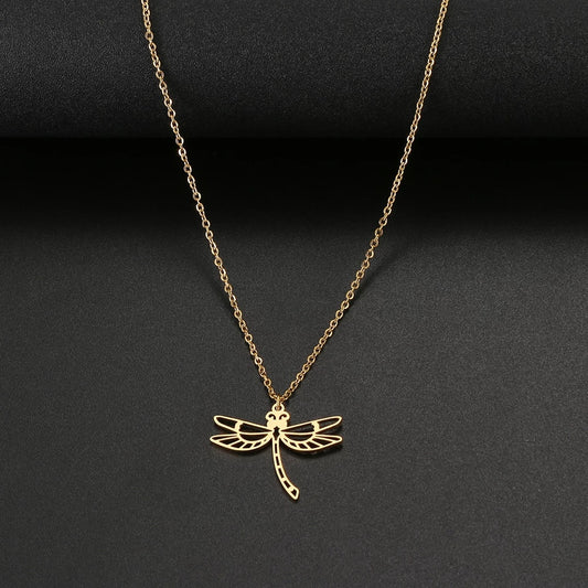 Collier Libellule ajourée, bijou en acier inoxydable doré