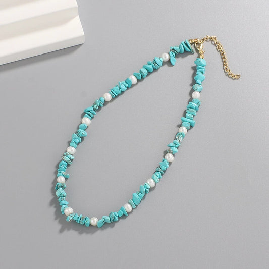 Collier de perles Corail turquoise, bijou en alliage plaqué or et en pierre naturelle