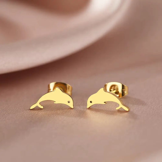Boucles d'oreilles Petits dauphins, bijou en acier inoxydable doré
