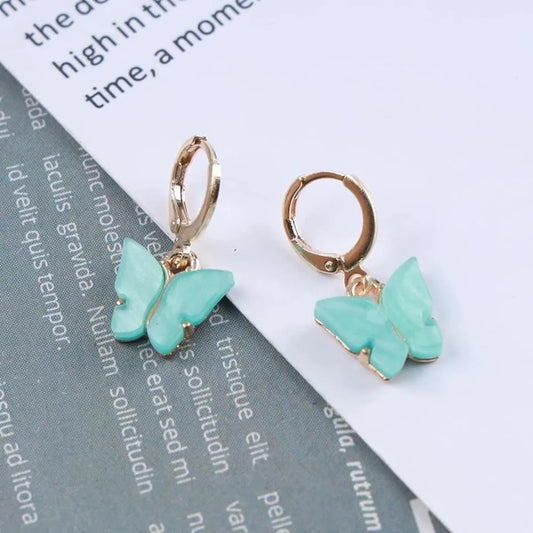 Boucles d'oreilles Papillons bleu clair, bijou en acier inoxydable argenté et en acrylique