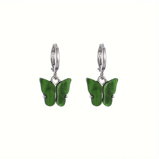 Boucles d'oreilles Papillons vert foncé, bijou en acier inoxydable argenté et en acrylique