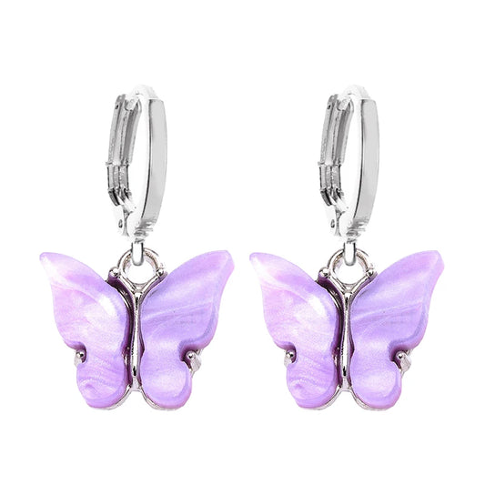 Boucles d'oreilles Papillons mauves, bijou en acier inoxydable argenté et en acrylique
