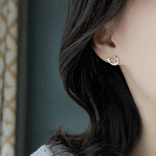 Boucles d'oreilles Dauphins, bijou en alliage plaqué argent 925 et zircons naturels
