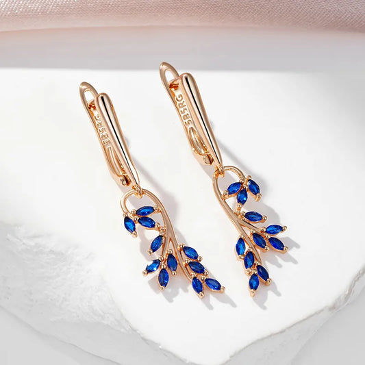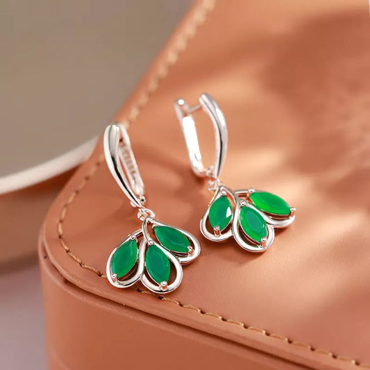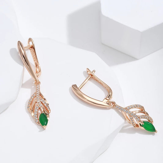 Boucles d'oreilles Feuilles avec zircons verts, bijou en plaqué or rose