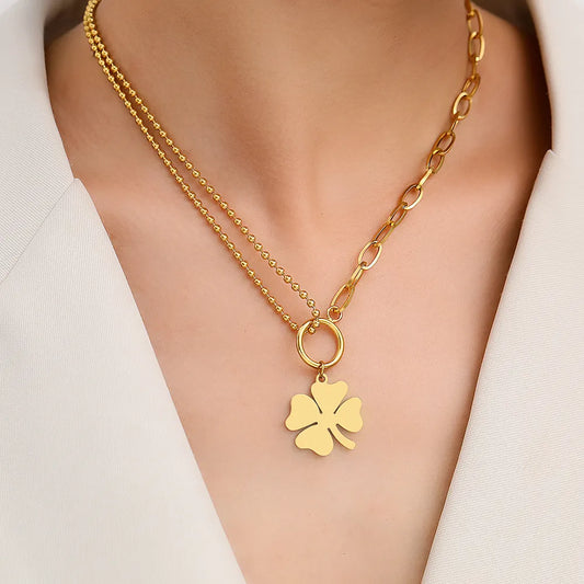 Collier Trèfle à Quatre Feuilles, bijou en acier inoxydable doré
