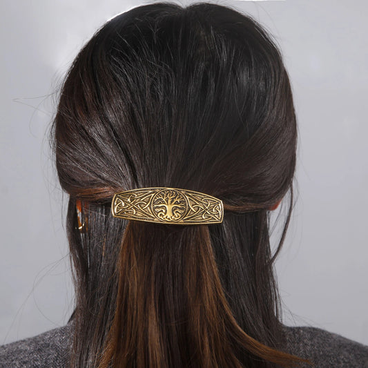 Pince à cheveux arbre de vie, bijou en acier inoxydable doré
