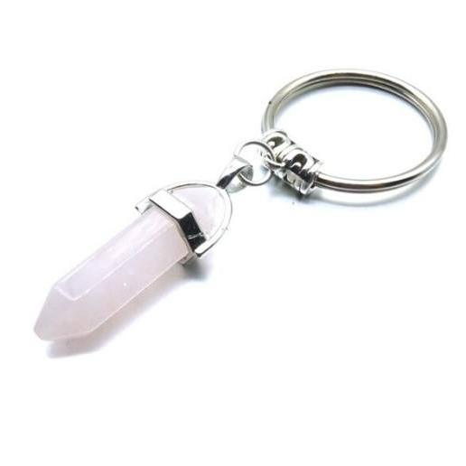 Porte-clés en acier inoxydable avec pendentif chakra en pierre naturelle Cristal rose
