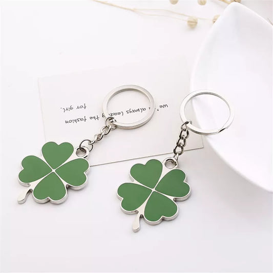 Double porte-clés Trèfles à quatre feuilles, accessoire de mode en acier inoxydable et en émail