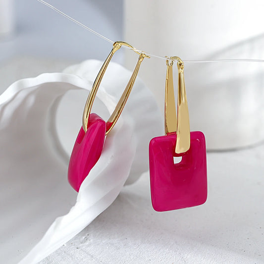 Boucles d'oreilles Géométriques, rose fushia, bijou en acrylique