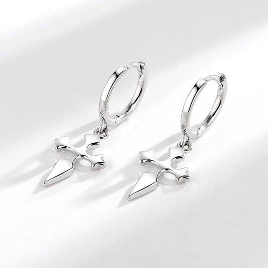 Boucles d'oreilles punk Croix, bijou en plaqué argent