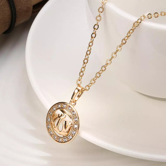 Collier Allah, bijou en alliage plaqué or 585 (14 carats) et en zircons naturels
