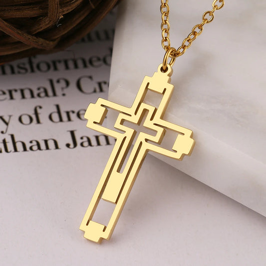 Collier Croix, bijou religieux en acier inoxydable doré