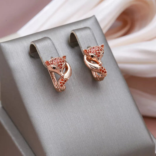 Boucles d'oreilles Renard, bijou en plaqué or 585 (14 carats) et en zircons naturels