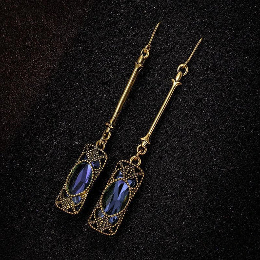 Boucles d'oreilles Rétros avec cristal bleu, bijou en plaqué or