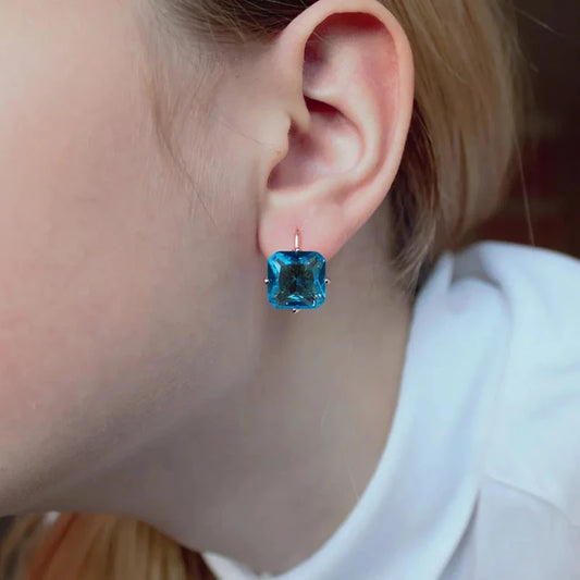 Boucles d'oreilles carrées avec zircons bleu océan, bijou en plaqué or rose