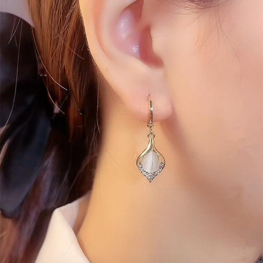 Boucles d'oreilles pendantes Perles "oeil de chat" noires, bijou en acier inoxydable