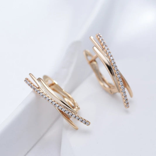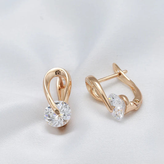 Boucles d'oreilles Courbe élégante & zircon blanc, bijou en alliage plaqué or 585 (14 carats) et en zircons naturels
