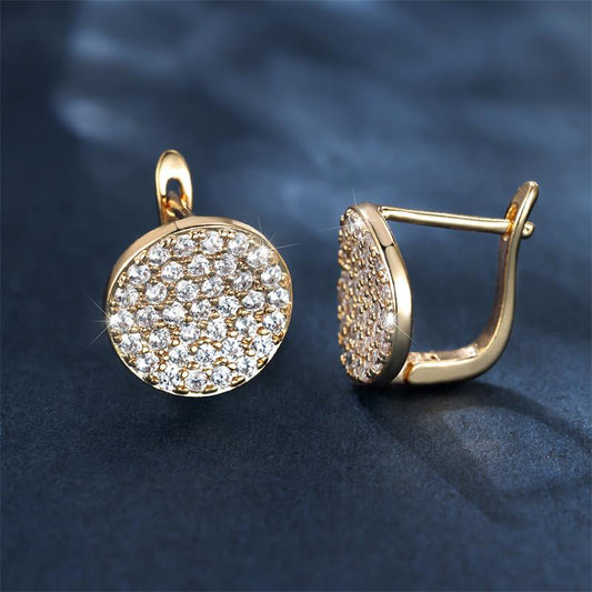 Boucles d'oreilles Pavé rond de zircons, bijou en alliage plaqué or 585 (14 carats) et en zircons naturels