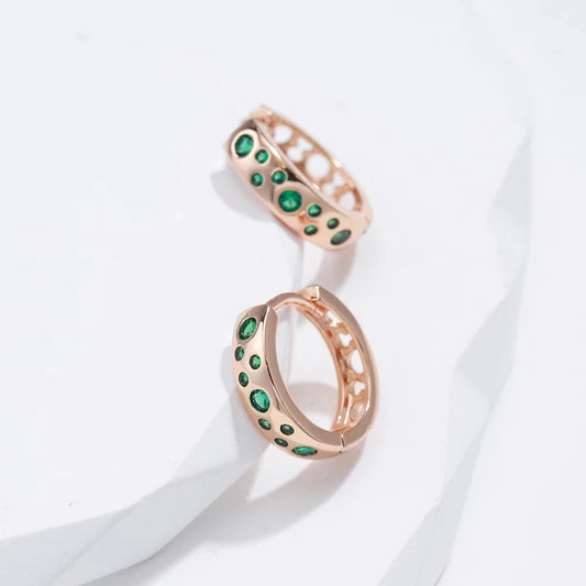 Boucles d'oreilles anneaux à zircons verts, bijou en plaqué or rose