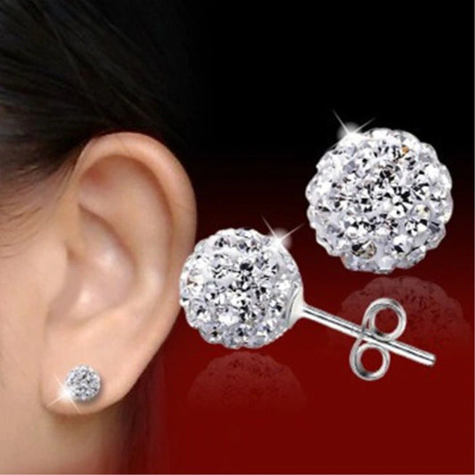 Boucles d'oreilles Boules avec zircons, bijou en plaqué argent