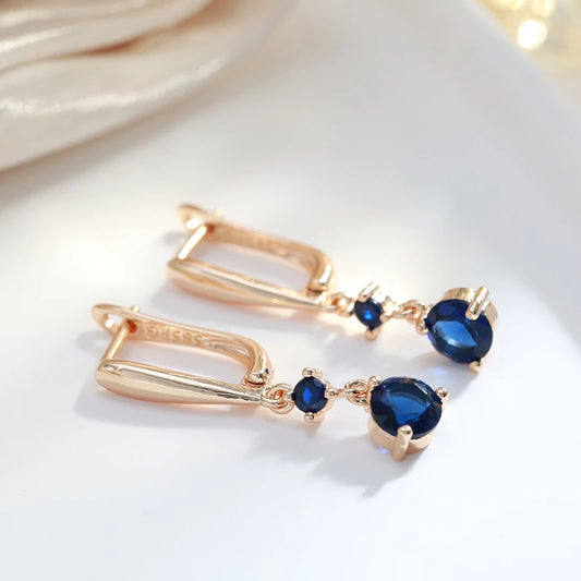 Boucles d'oreilles pendantes Zircons bleus, bijou en plaqué or rose