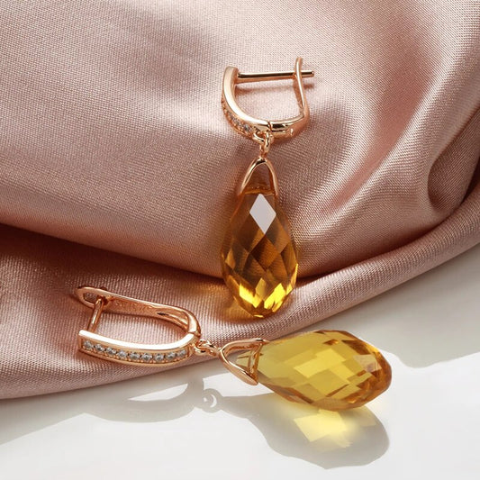 Boucles d'oreilles Cristal Jaune, bijou en plaqué or rose