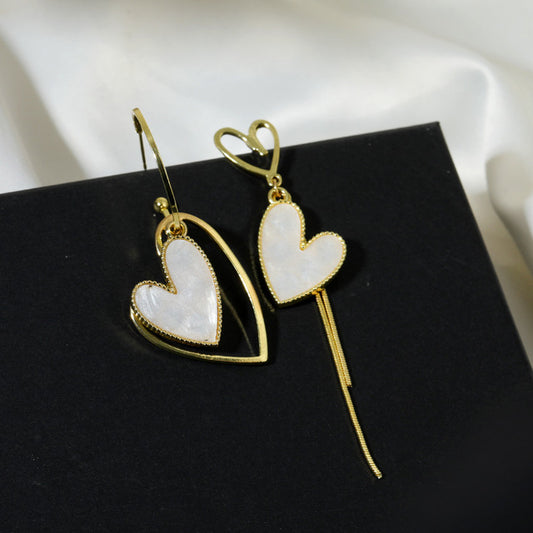 Boucles d'oreilles Coeurs, dépareillées, bijou en acier inoxydable et en émail