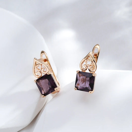 Boucles d'oreilles avec zircons mauves et coeurs arabesques, bijou en plaqué or rose