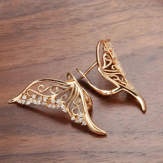 Boucles d'oreilles Papillon, bijou en alliage plaqué or 585 (14 carats) et zircons naturels
