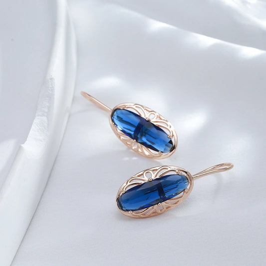 Boucles d'oreilles Tourmaline bleue, bijou en plaqué or 585 (14 carats) et en zircons naturels